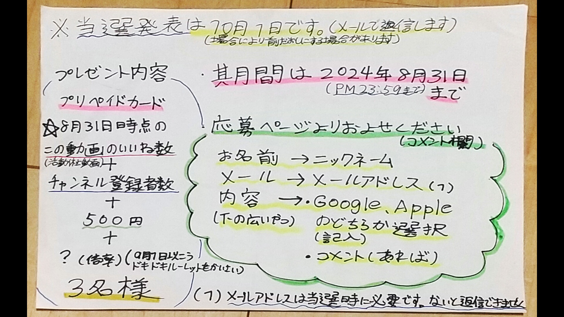 お知らせの動画のイイネ数+チャンネル登録者数+500+?(ドキドキルーレット)円分です